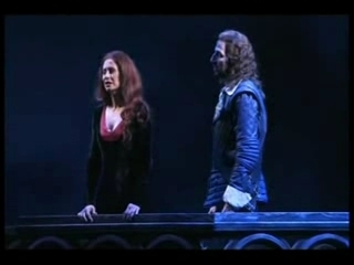 Pia Douwes and Marc Clear perform the song "Wo ist der Sommer?" from the German musical production "Drei Musketiere" in Stuttgart