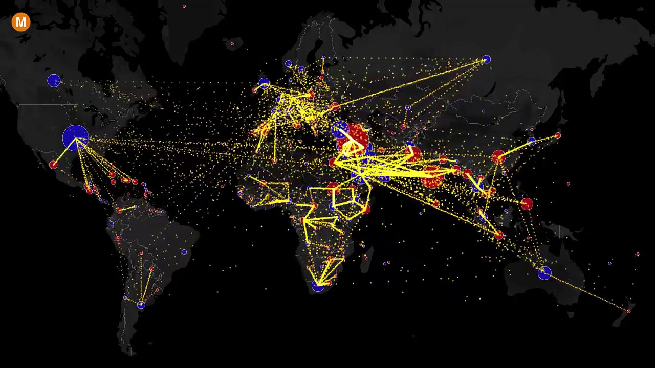 Mit Hilfe von Daten des United Nation Departments of Economic and Social Affairs hat Galka eine andere Karte designt. Diese beschäftigt sich vor allem mit drei Fragen: Wie viele Migranten gibt es auf der Welt? Woher kommen sie und wohin verschlägt es sie? <br /> <br />Dabei ist wichtig zu erwähnen, dass jeder einzelne gelbe Punkt 1.000 Einwohner repräsentiert. Generell sind es natürlich Schätzwerte, die die Entwicklung darstellen. <br /> <br />Die blauen Kreise zeigen, in welche Gebiete Menschen einwandern. Die roten Punkte, von wo aus sie auswandern.