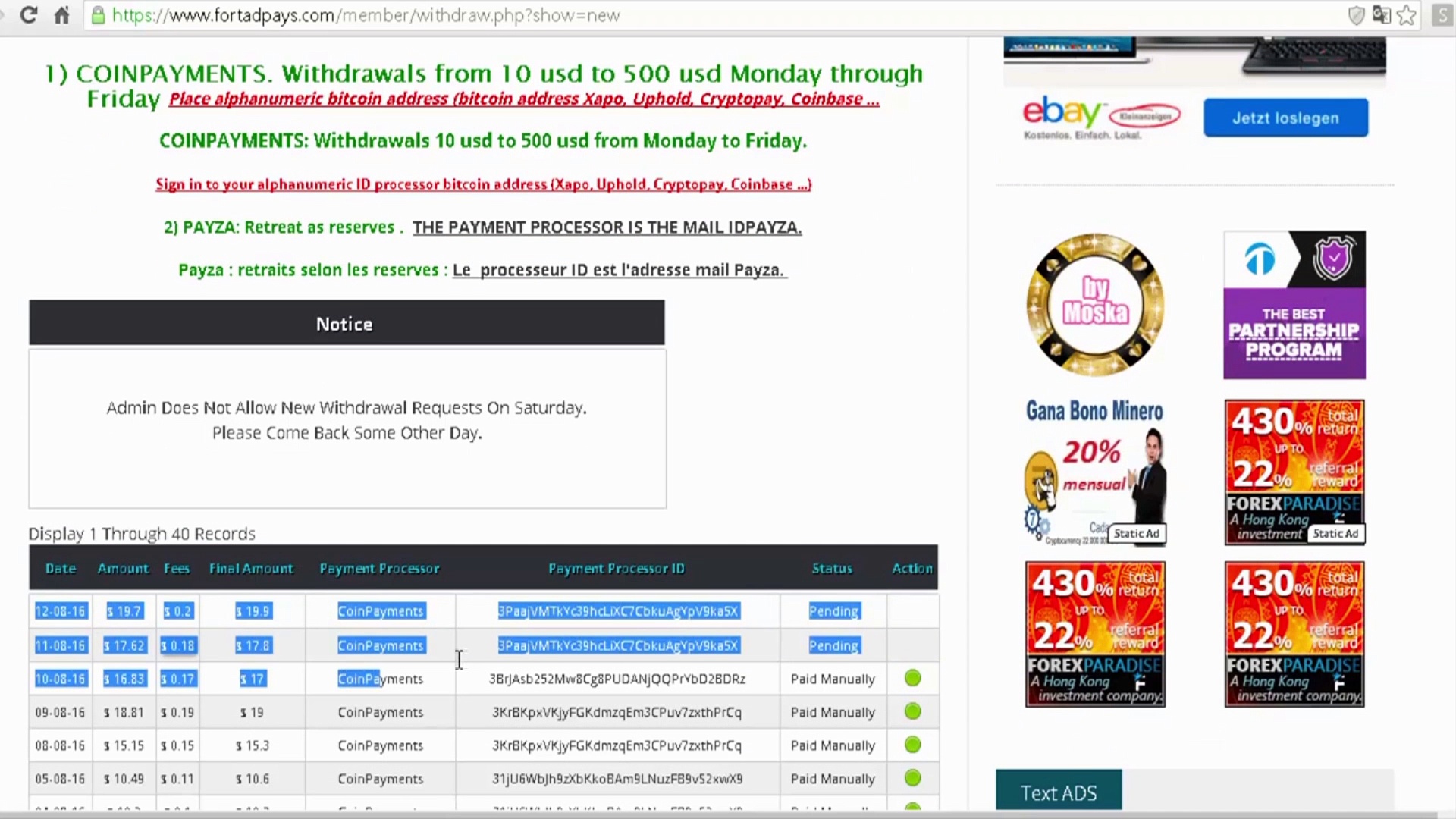 https://goo.gl/o1Tyqj <br />NEIN! NO! <br />Die Erfolgsgeschichte und die Auszahlungen gehen natürlich weiter. <br />Still und leise ist dieses Unternehmen auf dem Weg zur Spitze. Jetzt schon über 270.000 Partner und jeden Tag kommen neue hinzu. <br />Wir laden Dich ein. Starte auch Du jetzt mit $10 und der Chance bis zum 01.09.2016, 24.00 Uhr, auf einen Gewinn von 11 x $10-Packs, also einen Gewinn von $110.00. <br />Sichere Dir jetzt den persönlichen Link für Deinen erfolgreichen START. https://goo.gl/o1Tyqj