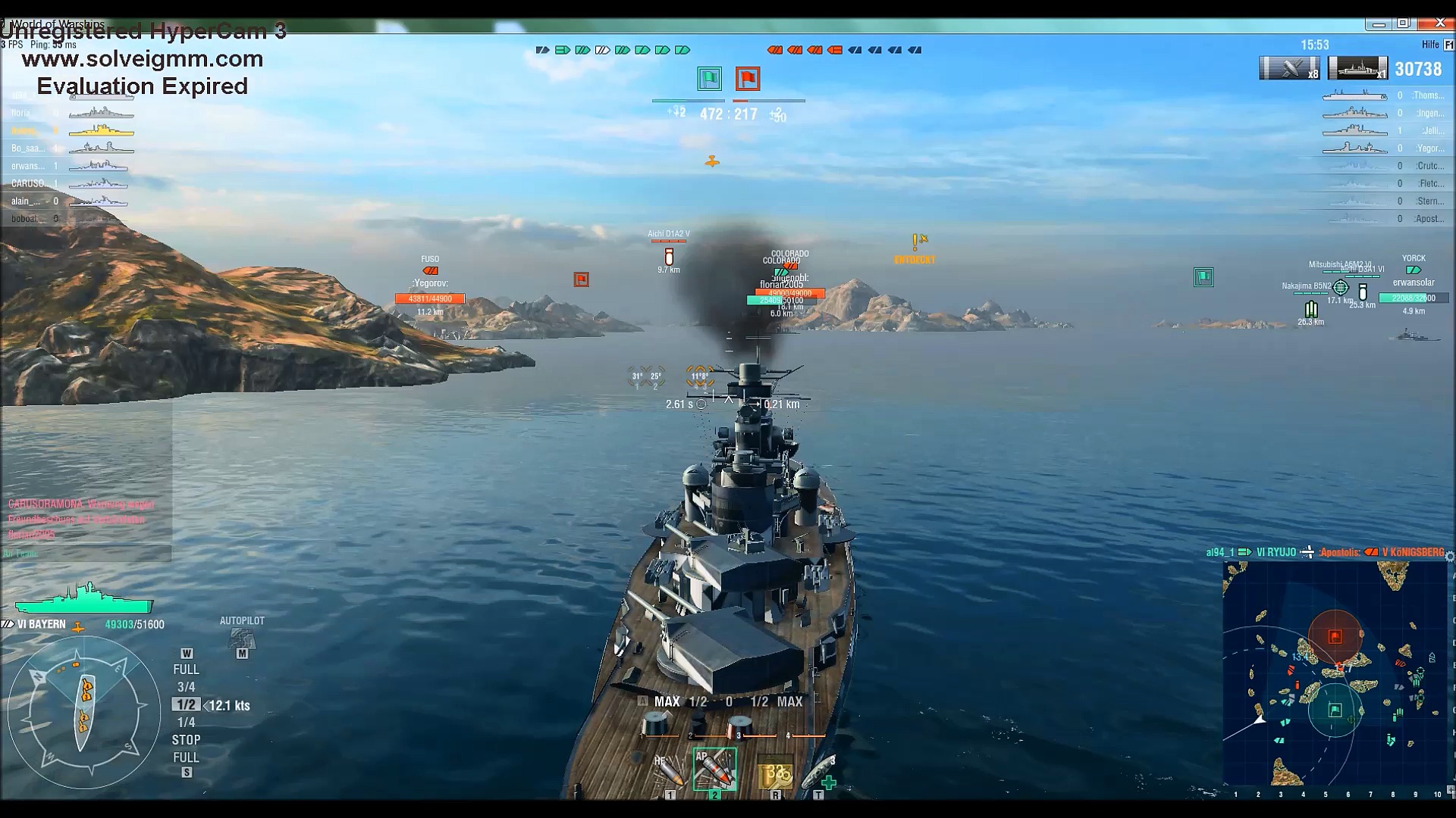 Das Schlachtschiff BAYERN im Kampfeinsatz <br />(Online Game World of Warship)