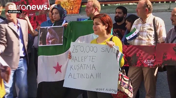 In mehr als 30 Städten weltweit haben Tausende Demonstranten gegen die Militäroffensive in der nordsyrischen Stadt Aleppo protestiert. In Berlin forderten mehrere hundert Menschen stärkere Unterstützung der notleidenden Syrer durch die deutsche Regierung und die Vereinten Nationen.<br /><br /> #Berlin protest for #Aleppo #RageForAleppo #AleppoIsBurning #Aleppoholocaust #SaveAleppo pic.twitter.com/m6VtTbBiZa— Ameenah A. Sawwan (@AmeenahSawwan) 1 October 2016<br /><br /> #DC: In 1 hr, 15 min: Global Day of #RageForAleppo, outside the White House. Join https://t.co/xGHaTaL69X pic.twitter.com/EFynbxxpVE— Mai El-Sadany (@maitelsadany) 1 October 2016<br /><br /> In Istanbul formierte sich stiller Protest, unterstützt durch Plakate und Spruchbänder. Nach Angaben des syrischen Zivilschutzes sind allein seit dem vergangenen Wochenende über 1900 Bomben auf den Ostteil Aleppos niedergegangen. Nach dem Ende der Waffenruhe vor knapp zwei Wochen wurden laut den Vereinten Nationen über 320 Menschen in Aleppo getötet, darunter 96 Kinder. <br /><br /> In London erklärte Abdelaziz Almashi, Gründer der Syria Solidarity Campaign wenden uns an die internationale Gemeinschaft, denn sie ist Bestandteil dieser Verbrechen gegen die Menschlichkeit. Baschar Al-Assad, die Russen und die Iraner verletzen internationale Gesetze, und die internationale Gemeinschaft unternimmt nichts, also ist sie Mittäter.”_ <br /><br /> Insgesamt forderten in London rund zweihundert Menschen ein Ende der Luftschläge auf Aleppo. Demonstriert wurde auch vor dem Weißen Haus und der russischen Botschaft in Washington D.C.<br /><br /> #Protest in front of the #WhiteHouse for #Syria. “Stop the #Genocide“ “#Obama get out of Putin’s bed” #RageForAleppo pic.twitter.com/ZQu5iHCYbL— Sonia Dridi (@Sonia_Dridi) 1 October 2016<br /><br /> Protesting outside the Russian Ambassador’s residence in #DC. #RageForAleppo. His house’s fence never looked so good. pic.twitter.com/JtcJsBiRSf— Mai El-Sadany (@maitelsadany) 1 October 2016<br /><br /> #Lyon #France stands with #Aleppo #RageForAleppo pic.twitter.com/SAEbPe8agh— Shero Alo (@SheroAlo1) 1 October 2016<br /><br /> Demonstration in #Amsterdam against the bombings and siege on #Aleppo <br /><br /> #RageForAleppo pic.twitter.com/bl9X2tfkfD— Iran Arab Spring (@IranArabSpring) 1 October 2016<br />