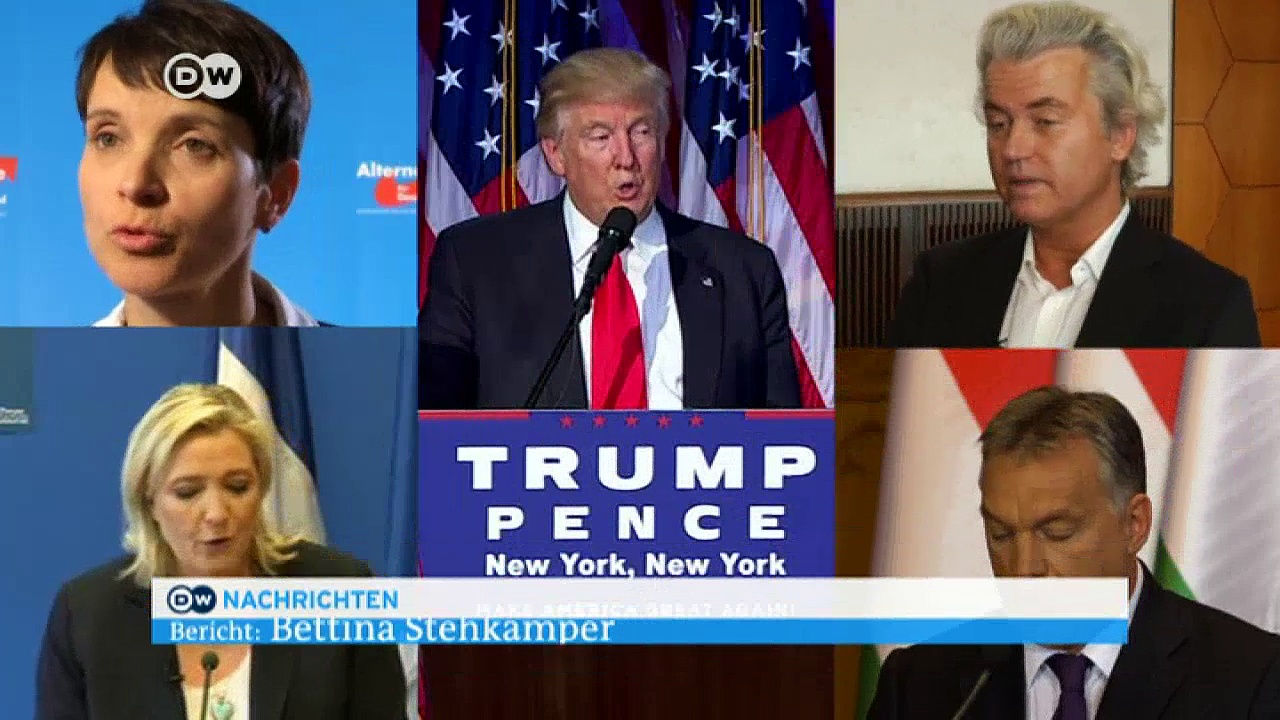 Europas Rechtspopulisten wähnen sich nach dem überraschenden Ergebnis der US-Wahl im Aufwind. Sie sehen sich nicht nur in Frankreich oder den Niederlanden auf dem Vormarsch, auch in Deutschland wittern rechtspopulistische Parteien Morgenluft.<br /><br />Mehr Nachrichten unter http://www.dw.com/de/themen/s-9077