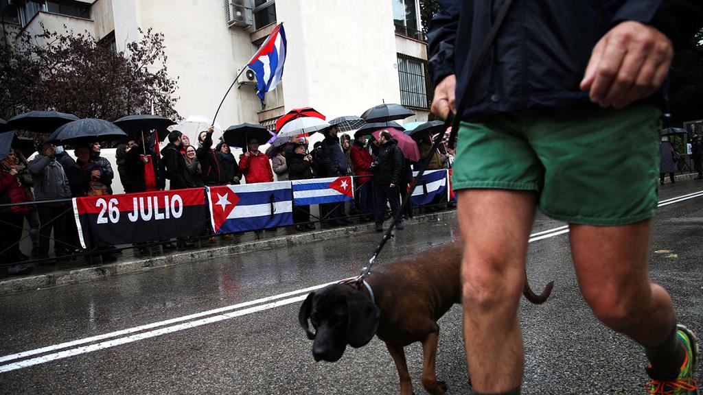 Dass Castro die Welt in Anhänger und Gegner spaltete, wurde auch vor der kubanischen Botschaft in Madrid deutlich. Es kam zu Beschimpfungen zwischen Castro-Gegnern, meist in Spanien lebenden Exil-Kubanern, und Trauernden.<br /><br /> Exil-Kubaner Juan Ramon Rivero rief: “Nieder mit Fidel Castro, es lebe ein freies Kuba, es ist an der Zeit, dass Kuba eine Demokratie wird.”<br /><br /> Gregorio Benito hat Blumen vor der Botschaft niedergelegt und meint: “Ich bin traurig über den Tod des Comandante. Er hat sich seinen Platz in der Geschichte verdient.”<br /><br /> Spaniens Ministerpräsident Mariano Rajoy würdigte Castro als “eine Figur von historischer Bedeutung”. Er übermittelte auf Twitter der Regierung in Havanna sein Beileid.<br /><br /> Mis condolencias al gobierno y autoridades cubanas por el fallecimiento del expresidente Fidel Castro, una figura de calado histórico. MR— Mariano Rajoy Brey (@marianorajoy) November 26, 2016<br /> <br /><br /> Der Chef der britischen Labour-Partei Jeremy Corbyn nannte Castro einen Champion der sozialen Gerechtigkeit, räumte allerdings Fehler während der langen Regierungszeit Castros ein. <br />Corbyn meinte: “Kuba hat ein beeindruckendes Bildungs- und Gesundheitssystem. Das hat er fertiggebracht. Er hat sich gegen Apartheid ausgesprochen, er sprach eine andere Sprache und brachte andere Werte auf die Weltbühne.”<br /><br /> Frankreichs Präsident Francois Hollande sagte, Castro sei mit Stolz gegen die Strömung geschwommen, und habe sein Land verteidigt. Auch sagte Hollande: “Ich habe in der Vergangenheit auf die fehlende Achtung der Menschenrechte in Kuba hingewiesen, aber ich war immer der Meinung, dass das Embargo eine inakzeptable Entscheidung war.”<br />