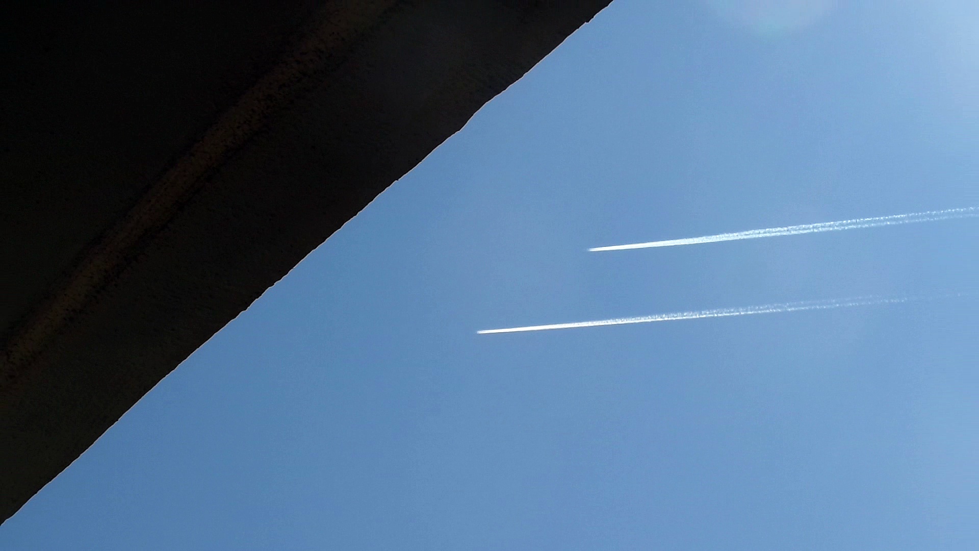 Two Cgemtrail Bombers moving in stereo above Mellieha, Malta at March 17th, 2017 time 1.15 p.m.