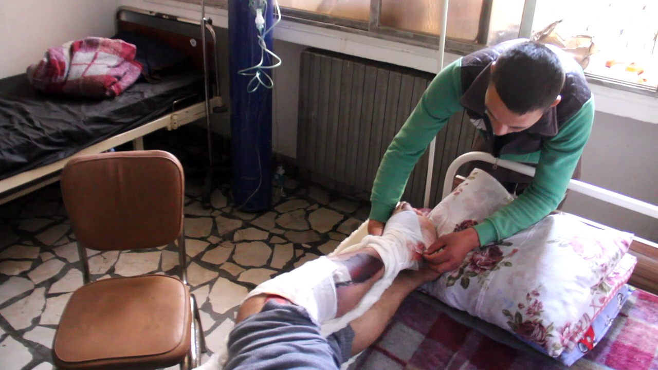 Wenige Tage nach dem verheerenden Angriff auf die syrische Stadt Chan Scheichun liegen viele Verletzte hier im Krankenhaus in Idlib. Unter ihnen der 40-jährige Hassan Jussef. Sein Fluchtreflex auf ein naheliegendes Dach hat ihm das Leben gerettet.