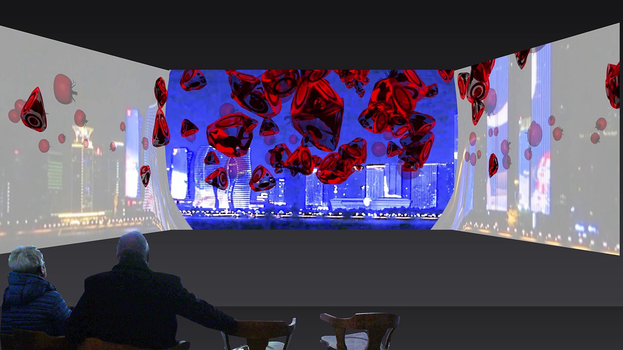» Paradies » Paradeis » Martin Rosenthal » Animationsvideo » 3fach Projektion » modernes Märchen » Paradeiser » Mehrkanalvideo » 3D Lyrik
