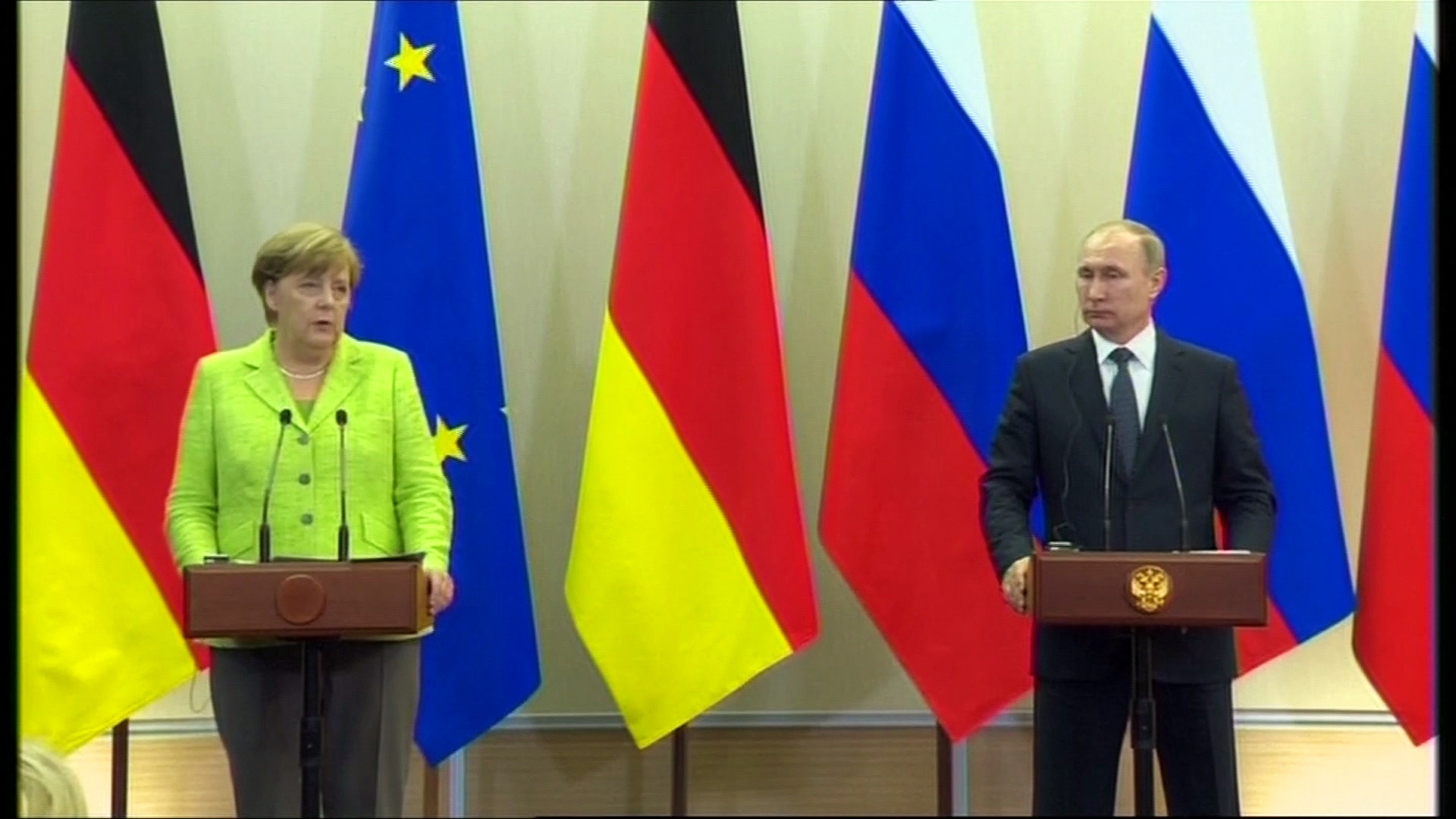 German Chancellor Angela Merkel, on a rare visit to Russia, said that Berlin and Moscow had to keep talking despite their disagreements, but those same differences overshadowed her talks with Russian President Vladimir Putin on Tuesday (May 2). <br /> <br />At a news conference following a meeting in the Russian Black Sea resort of Sochi, diverging positions were aired over Syria, Ukraine, Russian respect for civil rights, and allegations Moscow is interfering in other countries' elections. <br /> <br />Their body language suggested tensions: their facial expressions as they spoke to reporters were stern, and the two leaders barely looked at each other. <br /> <br />Merkel was making her first bilateral visit to Russia since Moscow annexed Ukraine's Crimea peninsula in 2014, a move that set off the worst confrontation between Moscow and the West since the Cold War.