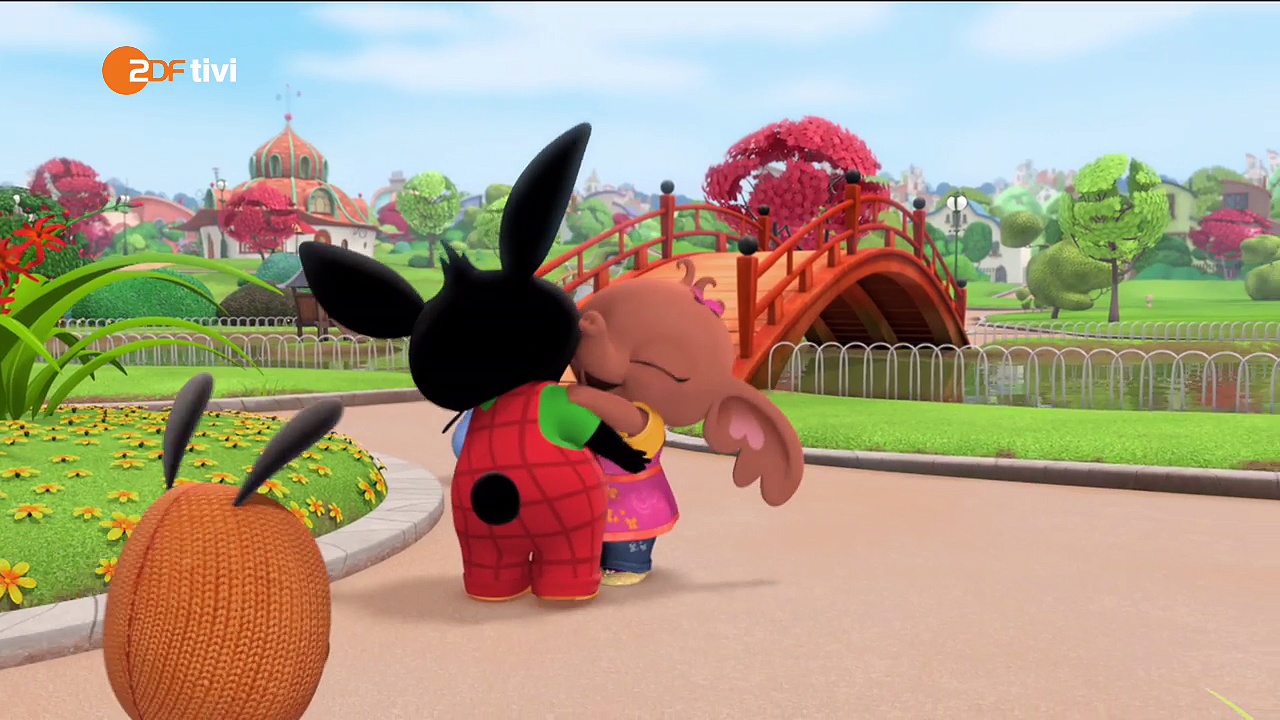 Bing und seine Freunde wollen auf der Bühne des Pavillons etwas vorführen. Flop, Amma, Paula und andere schauen gespannt zu. Als Bing an der Reihe ist, bekommt er heftiges Lampenfieber. Er traut sich nicht, sein Lied anzustimmen. Um ihm beizustehen, kommen seine Freunde zu ihm auf die Bühne. Alle zusammen singen sie im Chor das Regenbogenlied. Und dann stimmt auch das Publikum mit ein. <br /> <br />Für den kleinen, munteren, pechschwarzen Hasen Bing ist jeder Tag ein Abenteuer. Egal, ob er sich mit seinen Freunden auf dem Spielplatz trifft, im Garten einen Frosch entdeckt oder in der Küche den Mixer mit Möhren füttert. Immer an Bings Seite ist sein erfahrener Gefährte Flop. Er hilft bei Pannen und Rückschlägen, weiß guten Rat und gibt Bing Sicherheit und Zuversicht.