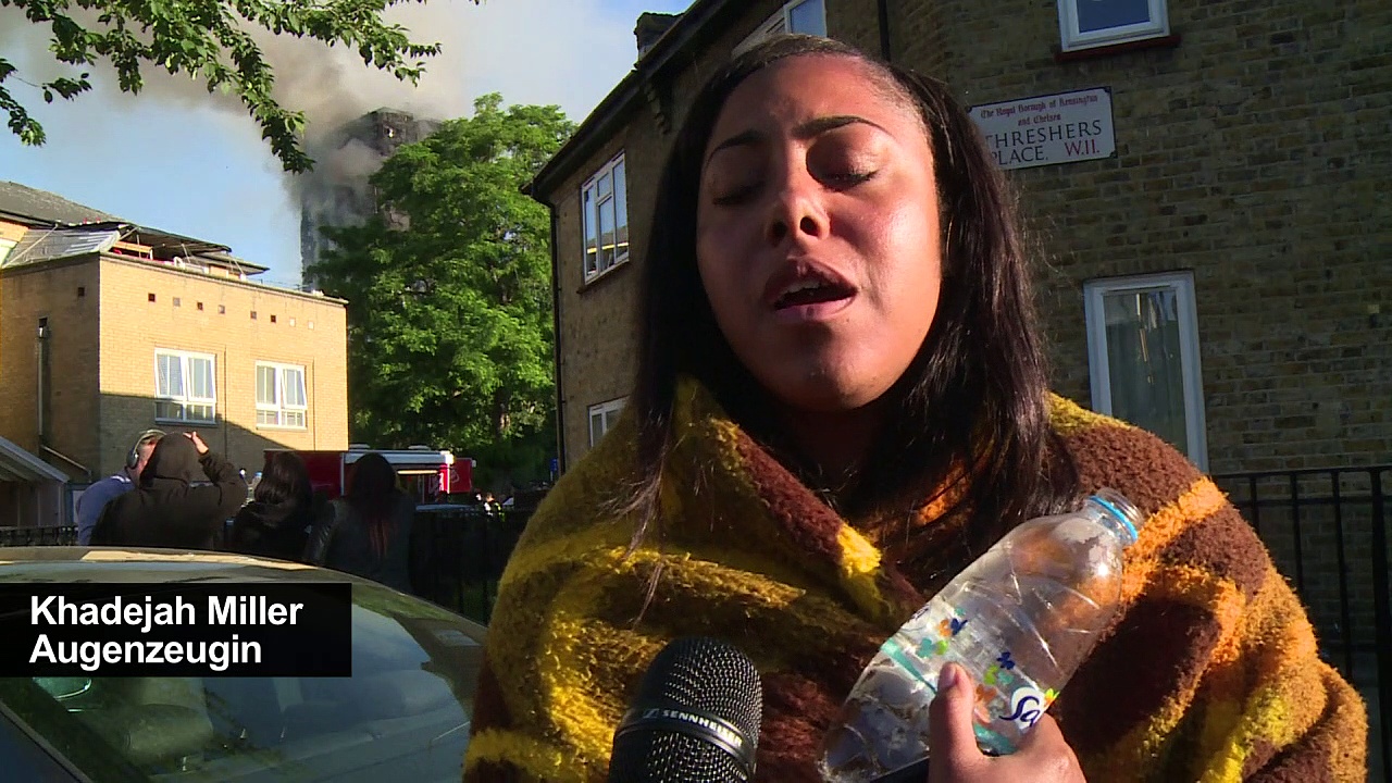 Eingeschlossene Menschen machen verzweifelt auf sich aufmerksam, andere springen in Todesangst aus dem Fenster in die Tiefe. Beim Großbrand in einem Londoner Hochhaus spielen sich grauenhafte Szenen ab.