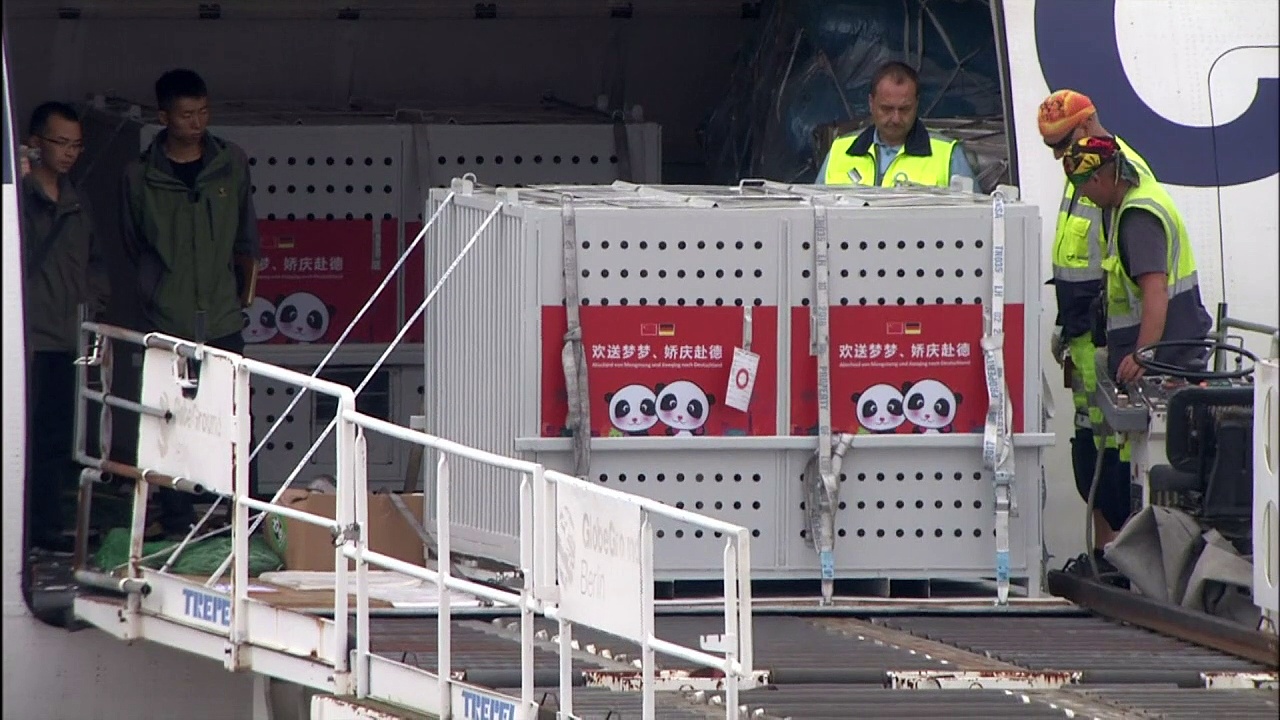 Schätzchen und Träumchen sind in Berlin angekommen: Eine Frachtmaschine der Lufthansa mit dem Panda-Pärchen an Bord landete in Berlin-Schönefeld. Im Juli sollen die Tiere der Öffentlichkeit präsentiert werden.