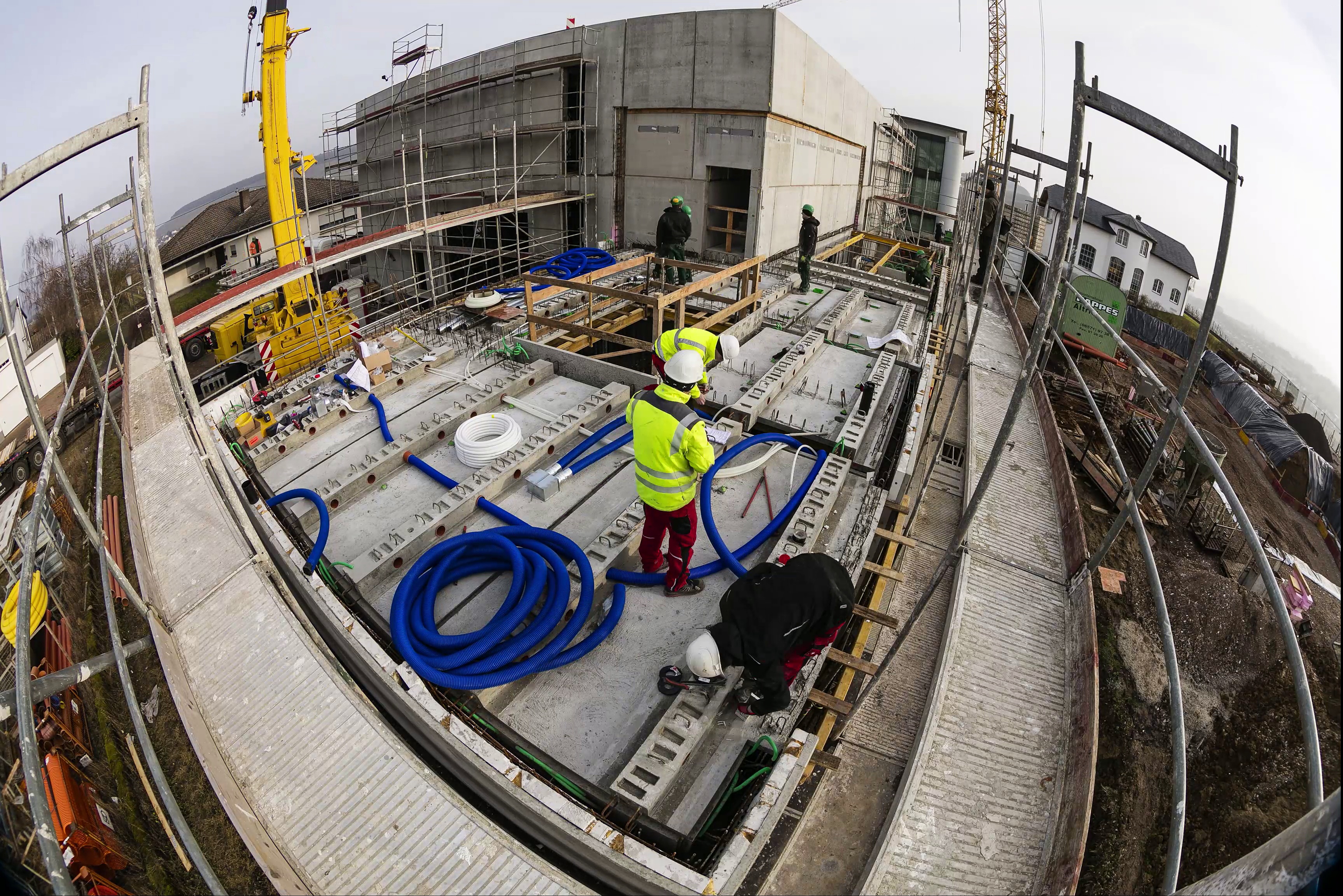 Verlegen der unterem Schale des CEILTEC® Deckensystems und Integration der gesamten Haustechnick inkl. der CEILTEC® Bauteilaktivierung zum Heizen & Kühlen.
