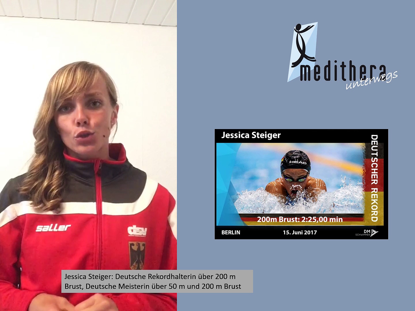 Jessica Steiger ist die derzeit erfolgreichste Schwimmerin und hat Medithera Magnetfeldtherapie getestet. Jetzt gehört das System zum täglichen Trainingseinsatz.