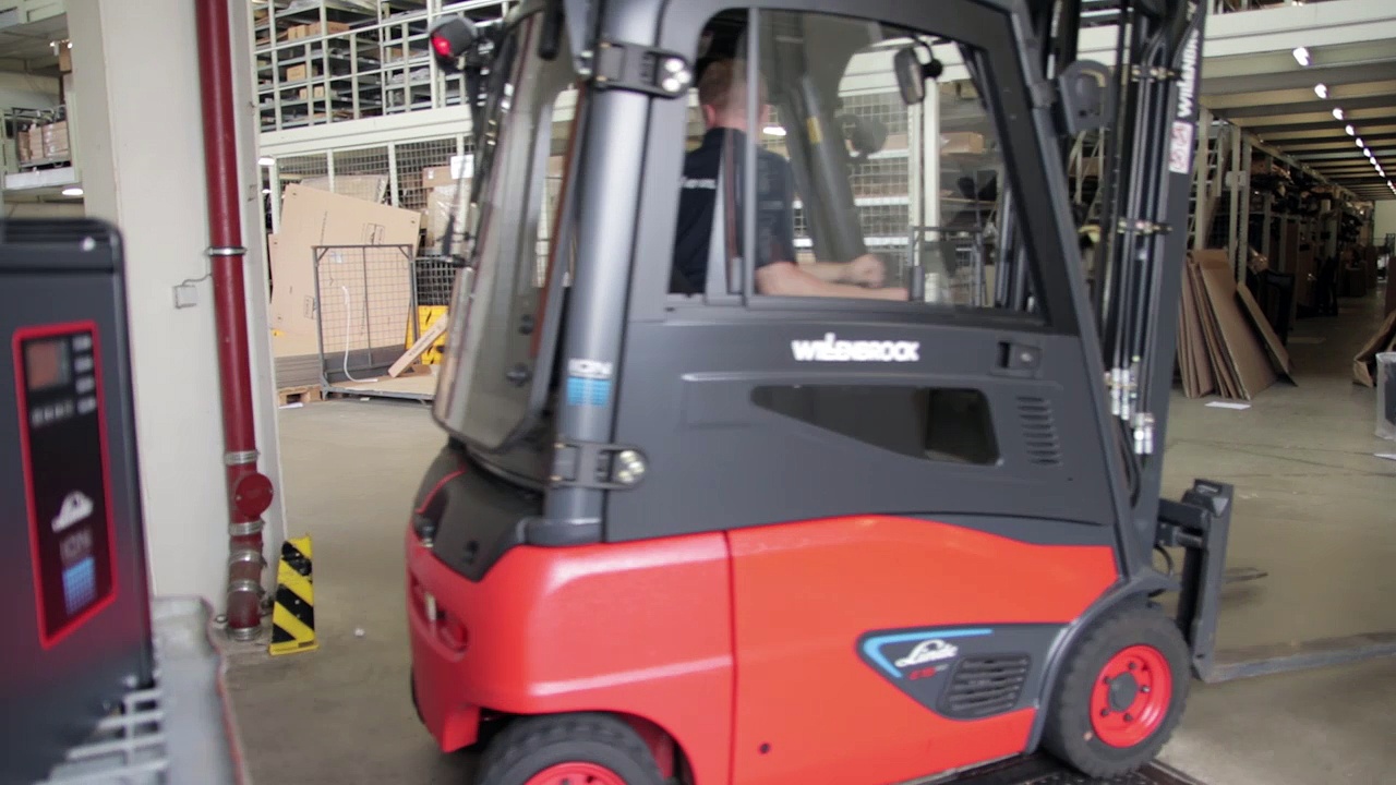 http://www.linde-mh.de Seit dem Frühjahr 2017 ist ein Linde-Frontstapler mit Lithium-Ionen-Batterie Teil der Flotte im Nora Zentrum, dem zentralen Lager der VW-Ersatzteillogistik von Autohaus Wolfsburg Hotz und Heitmann Gruppe. Gabelstapler mit Lithium-Ionen-Batterien bieten viele Vorteile. In Stoßzeiten können die Stapler schnell zwischengeladen werden, das erhöht die Verfügbarkeit, hinzu kommt die lange Lebensdauer der Batterie. Ein mehrstufiges Sicherheitskonzept schützt im Fall der Fälle. Der Logistikleiter lobt die große Zuverlässigkeit im Einsatz. Zudem spart das Unternehmen mit dem Linde E16 ION pro Jahr 350.- Euro Energiekosten, der CO2 Ausstoß verringert sich um mehr als 1 Tonne.