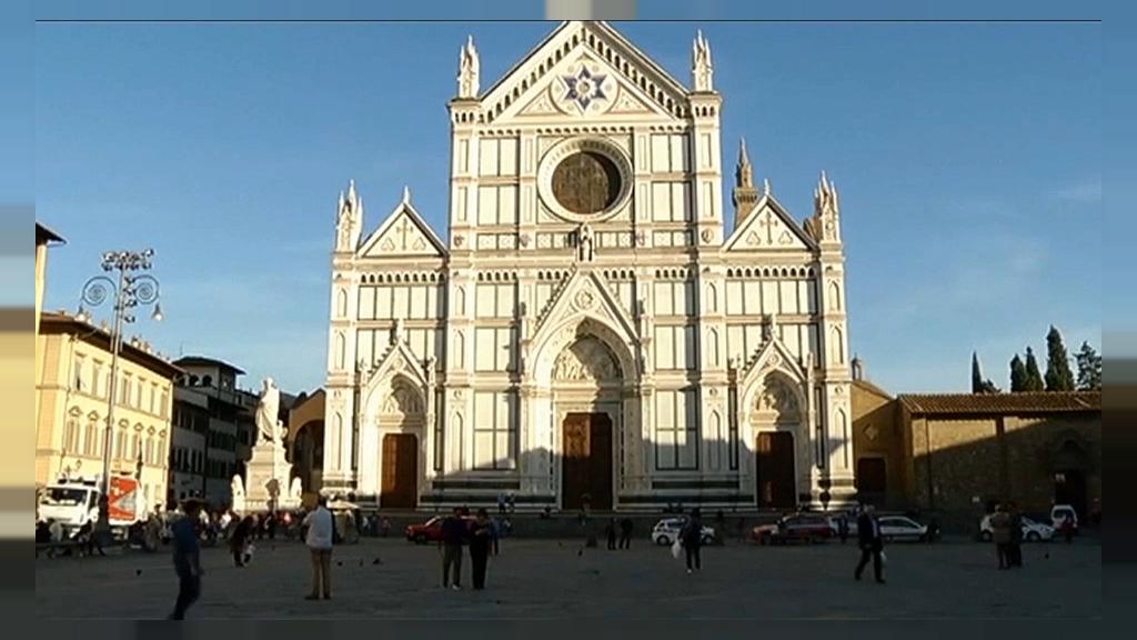 Florenz: Tourist von Stein in Kirche erschlagen <br /><br />In der Kirche Santa Croce in Florenz ist am Donnerstag ein spanischer Tourist von einem herabfallenden Stein erschlagen worden. Das Deckenelement einer Säule, das den 52-Jährigen am Kopf getroffen habe, sei etwa 30 Zentimeter groß gewesen und habe sich in 20 Meter Höhe befunden. Der Mann habe mit seiner Frau die Kirche besichtigt. Jetzt ermittelt die Staatsanwaltschaft wegen fahrlässiger Tötung. Die Franziskanerkirche sollte zunächst bis Freitag für Untersuchungen geschlossen bleiben. ((Das Direktorium der Kirche sprach den Angehörigen des Opfers sein Beileid aus und versicherte, man wolle die Ermitlungsbehörden bei ihrer Arbeit unterstützen. ))Die Basilika wird auch als Pantheon oder Tempel italienischer Größen bezeichnet, weil sich darin die Grabstätten von Michelangelo, Galileo Galilei und Niccolò Machiavelli befinden.<br /><br />00:50 end<br />