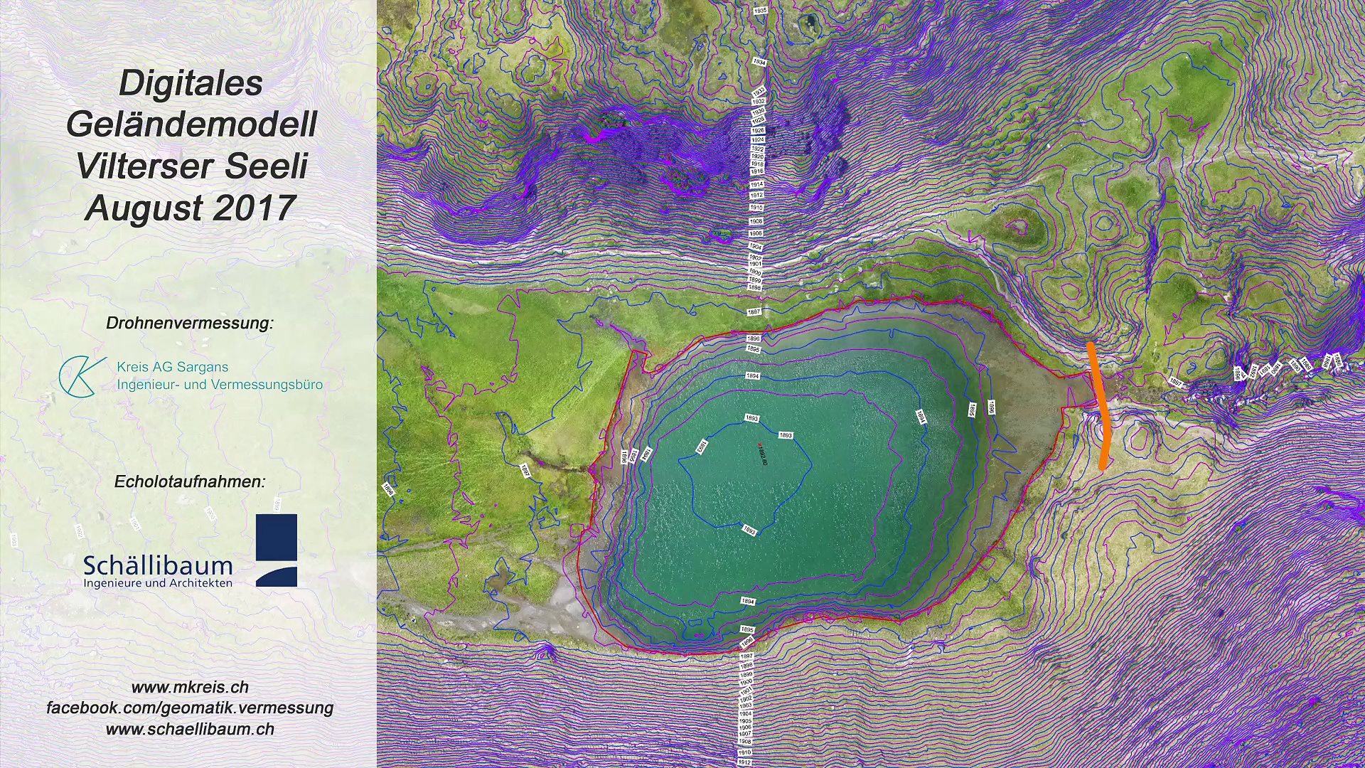Für die Analyse zur möglichen Nutzung als Speichersee wurde das Gelände um das Vilterser Seeli mittels Drohnenvermessung erfasst. Das Gelände im See wurde mittels Echolot vermessen. Die beiden Datensätze wurden kombiniert und daraus ein digitales Geländemodell berechnet. Das Projekt wurde in Zusammenarbeit der Kreis AG Sargans (Drohnenvermessung, Berechnungen) und der Schällibaum AG (Echolotaufnahmen) ausgeführt. <br /> <br />Weitere Informationen finden sich auf www.mkreis.ch und www.messdrohne.ch