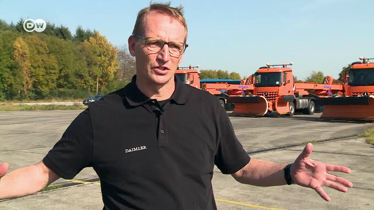 Das "Remote Truck Interface" System ermöglicht ein automatisiertes Schneeräumen der Start- und Landebahn am Frankfurter Flughafen. Mit LKW, die als fahrerlose Schneeräumfahrzeuge über einen Echtzeit-Datenaustausch miteinander verbunden sind.<br />Mehr Motor mobil unter: http://www.dw.com/de/tv/motor-mobil/s-9689