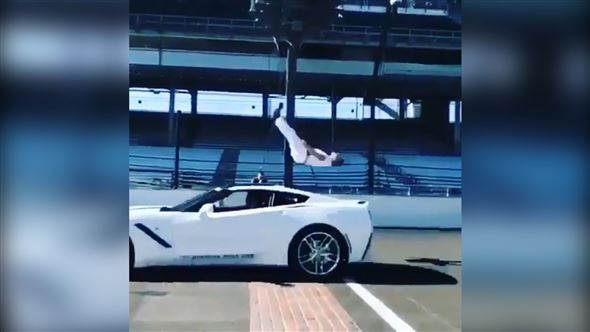 Ein Mitglied der türkischen Parkourgruppe 'Parkour Türkiye' legte einen krassen Stunt hin. Über einem fahrenden Auto macht er einen spektakulären Salto.