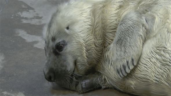Robbenmutter Lily bringt ihr drittes Kind zur Welt. Der kleine Welpe mit weißem Fell wächst im Zoo auf. in Deutschland kann man Kegelrobbennachwuchs auch am Strand beobachten. Durch Schutzmaßnahmen erholt sich der Robbenbestand langsam wieder.