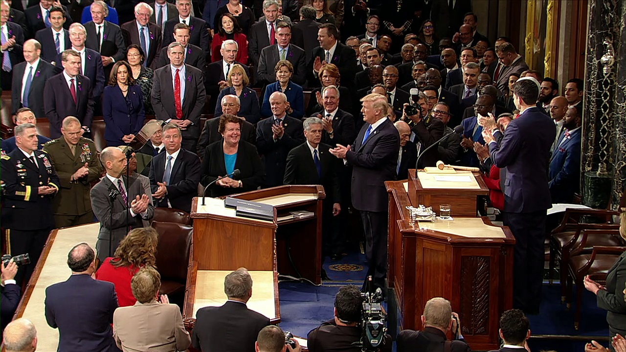 <br /> In seiner ersten Rede zur Lage der Nation hat sich US-Präsident Donald Trump als überparteilicher Konsensstifter zu inszenieren versucht. Er rief Republikaner und Demokraten dazu auf, ihre "Differenzen beiseite zu legen" und mit ihm zusammen unter anderem an der Einwanderungsreform und einem Mammutprogramm zur Modernisierung der Infrastruktur zu arbeiten. <br />