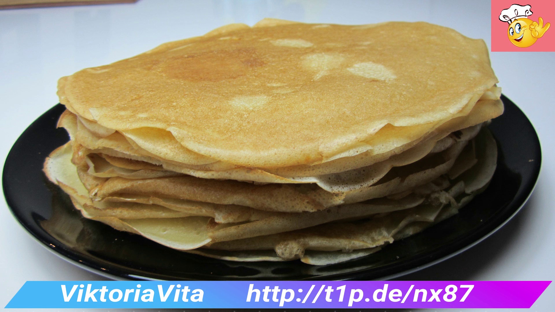 <br />Ингредиенты: яйца – 2 штуки; разрыхлитель теста 8 гр; молоко – 650 мил; мука – 280 грамм; соль – 1/2 чайной ложки; сахар - 1 чайная ложка; Масло растительное 150 мл; Мёд (по- вкусу), Сметана(по- вкусу), листочек мелиссы или мяты.<br /><br />Zutaten: Eier - 2 Stück; Backpulver 8 gr; Milch - 650 mil; Mehl - 280 Gramm; Salz - 1/2 Teelöffel; Zucker - 1 Teelöffel; Pflanzenöl 150 ml; Honig(um garnieren), saure Sahne(zum garnieren), ein Blatt Zitronenmelisse oder Minze.
