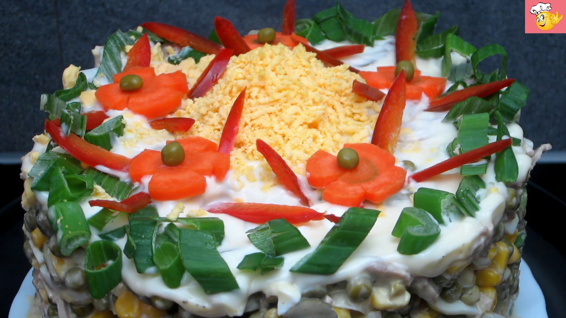 Ингредиенты: Конс. зелёный горошек-400 гр; Конс. кукуруза -250 гр; Говядина (уже варёная) -250гр; Яйца варёные - 4 шт; Огурцы марин. - 350 гр; Май онез - 4 ст. л; Лук зелёный - 3-4 шт; Чёрн. перец, соль - по-вкусу.<br /><br />мой канал: http://t1p.de/nx87 Kanallink: http://t1p.de/nx87 Моя Группа "ВКУСНО" на Facebook : http://t1p.de/yszg