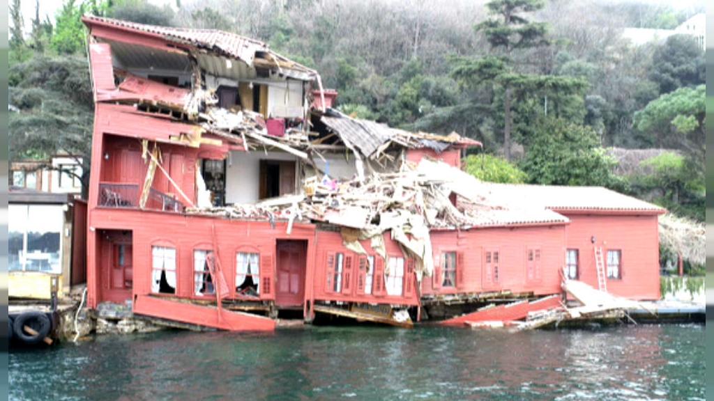 Ein Frachtschiff ist auf dem Bosporus in ein historisches Holzhaus gerast.<br />