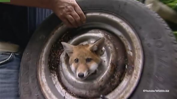Ein Fuchs hat Glück im Unglück gehabt, denn der kleine Kerl steckte in einem Autoreifen fest. Zum Glück konnte ihn das Team von 'Wildlife Aid' befreien. Sobald er wieder zu Kräften gekommen ist, werden ihn die Tierschützer wieder auswildern.