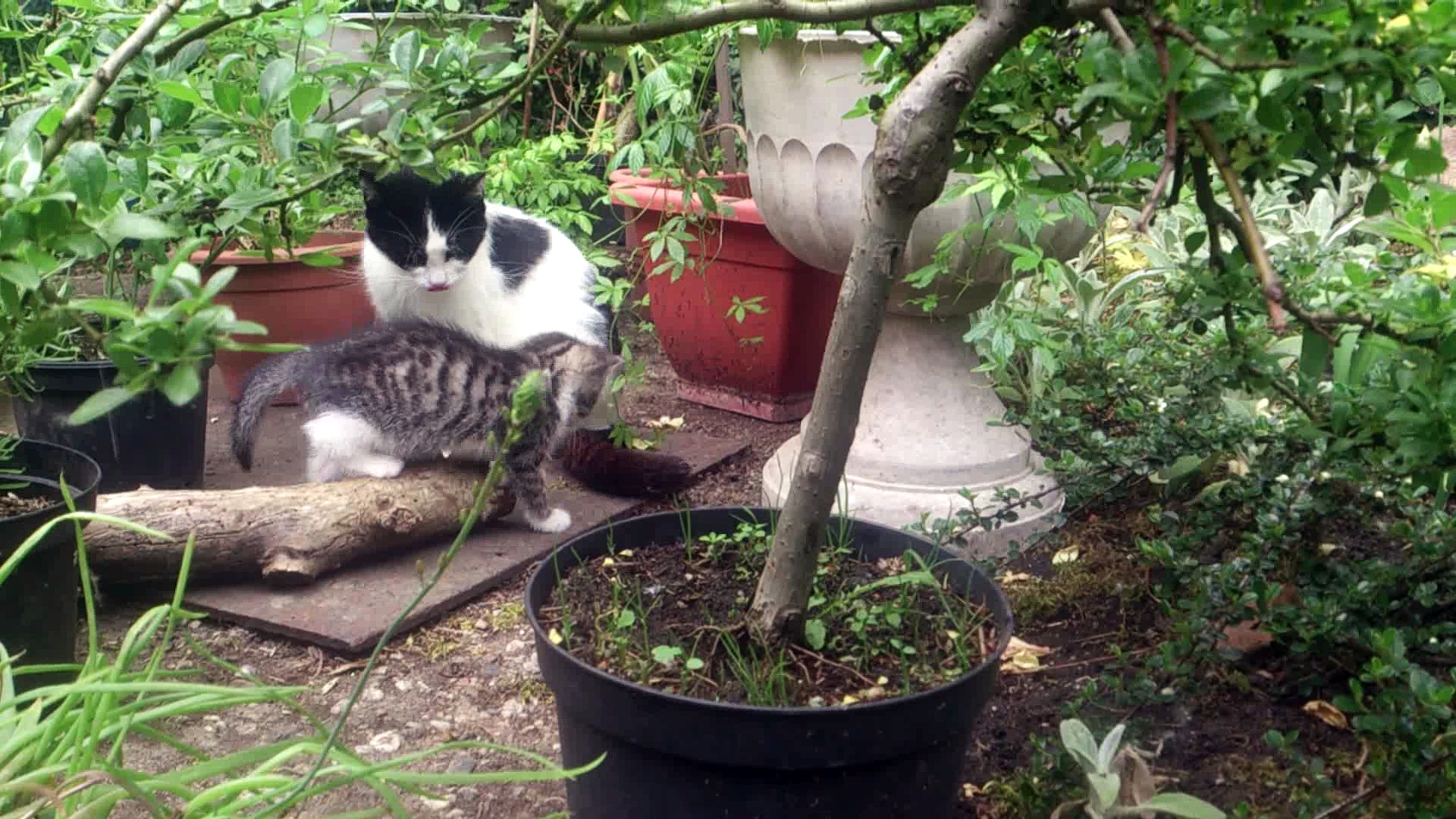 Die kleinen Katzen Max und Moritz bei ihrem ersten Garten-Ausflug mit Mutti.<br /><br />Video: Holger Hintz<br /><br />www.gourmetkater.de