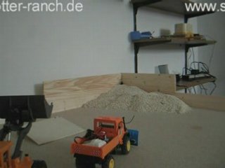 Unimog 1:32 RC gesteuert räumt mit Räumschild <br />im Bunker.