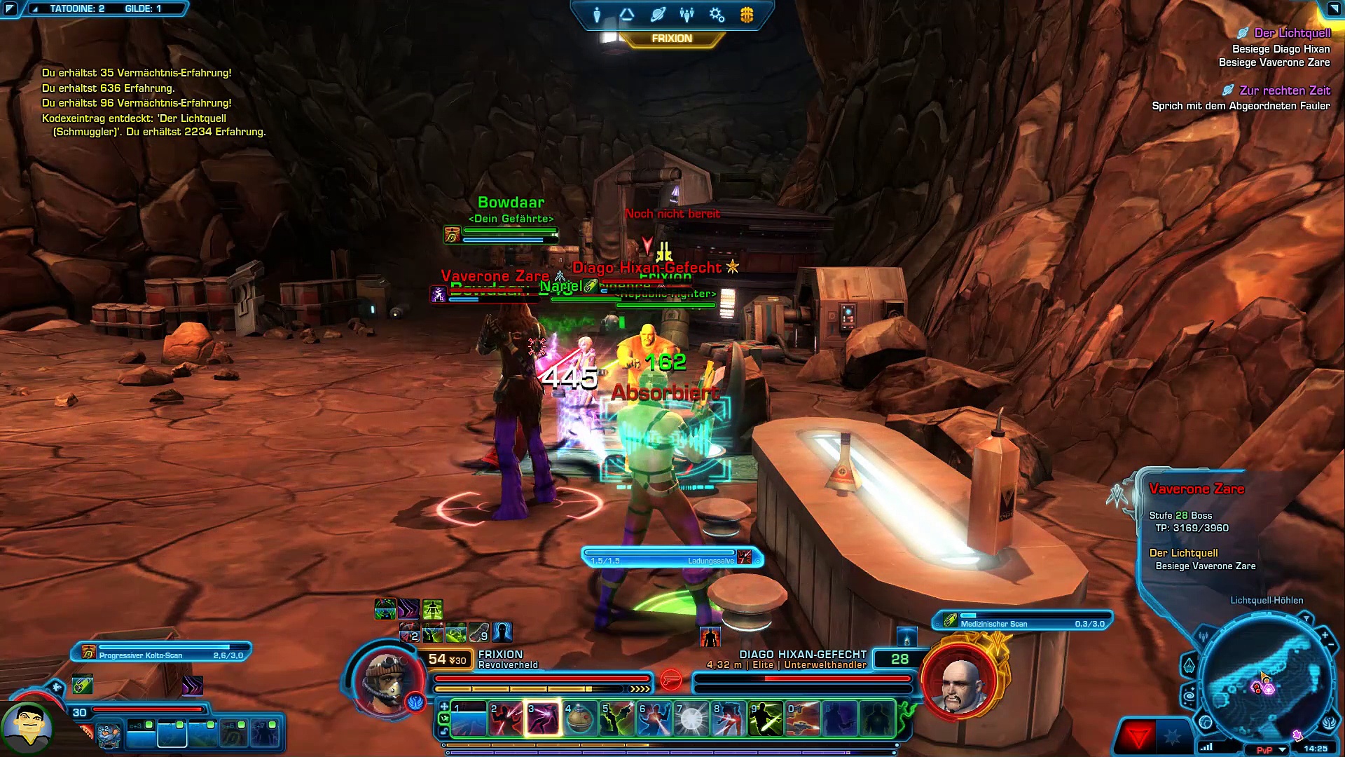 Wir haben endlich denjenigen gefunden, wegen dem wir auf Tatooine sind: Diago Hixan, den Verbrecherboss, den wir beklauen sollen. Nun ja, dann will ich mich gleich mal ran machen an diese Aufgabe...