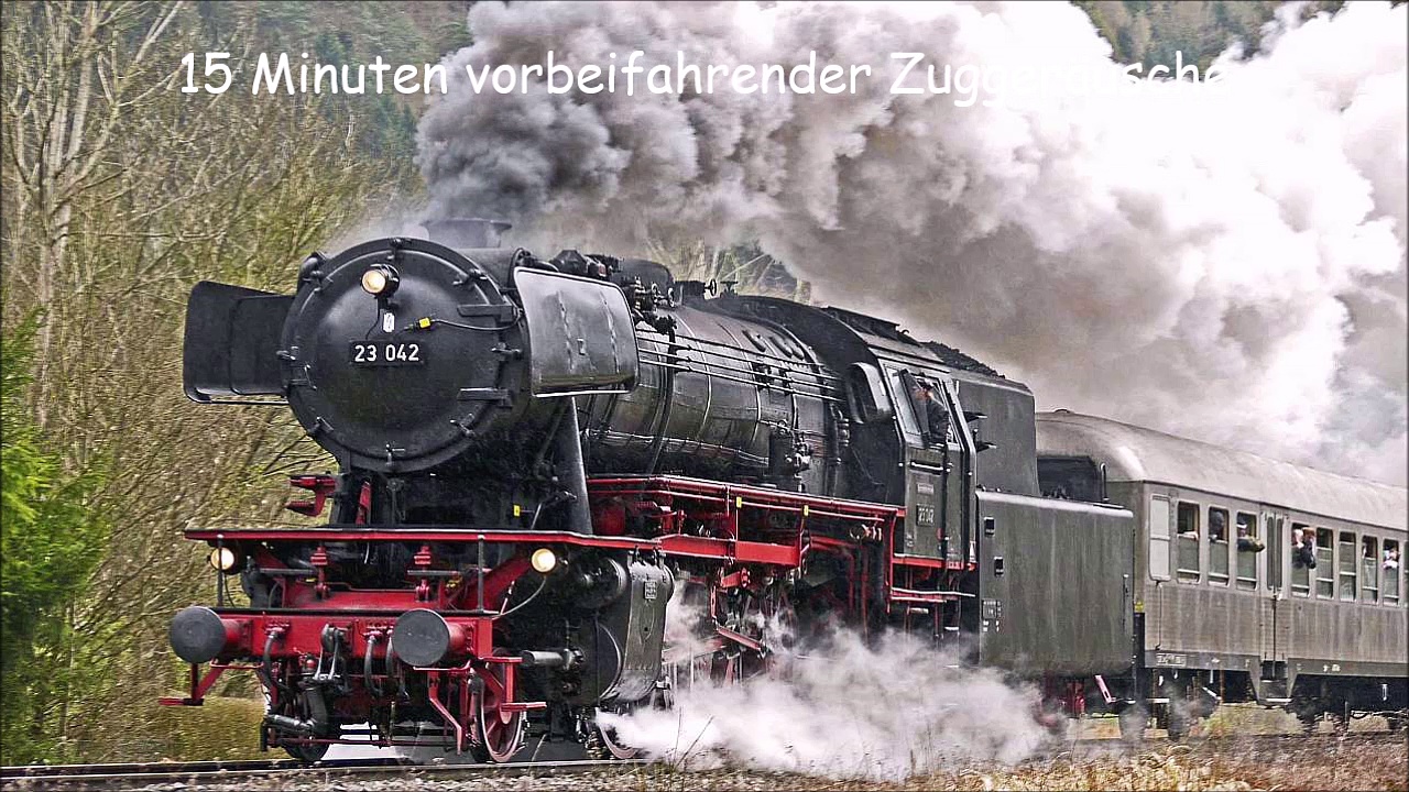 15 Minuten vorbeifahrender Zuggeräusche.
