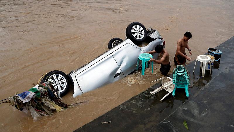 Heftige Tropenstürme haben den Fluss Marikina über die Ufer treten lassen und die Region um die Hauptstadt Manila unter Wasser gesetzt.