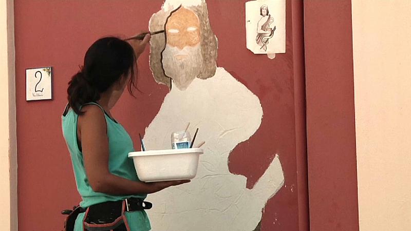 Jedes Jahr kommen zahlreiche Fresken-Maler nach Treglio in den Abruzzen, um hier Häuserwände zu bemalen.