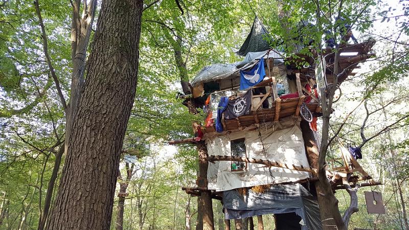Im Hambacher Forst ist eine Person von einer Hängebrücke zwischen zwei Baumhäusern gestürzt - der Unfall soll sich nach Medienberichten nicht bei einer Polizeiaktion ereignet haben.