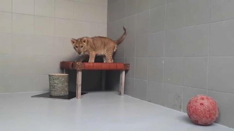 Bei einer Löwenstiftung in Nordholland hat dieses Löwenjunge vorerst ein neues Zuhause gefunden