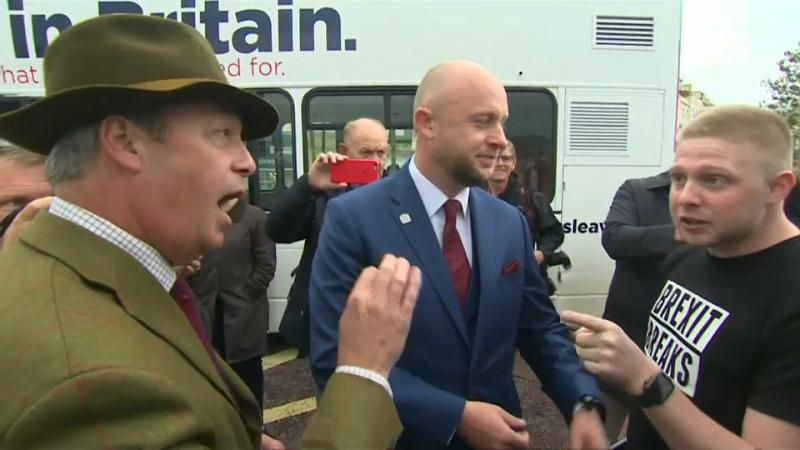 Im Rahmen seiner "Leave Means Leave"-Kampagne ist der britische Rechtspopulist Nigel Farage in Südengland mit einem Brexit-Gegner aneinandergeraten.
