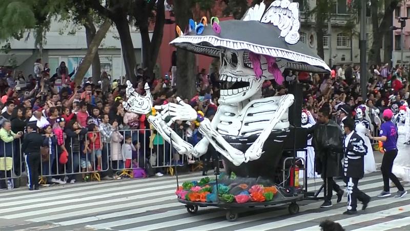 Zehntausende von Mexikanern säumen den Reforma-Boulevard in Mexiko Stadt zum "Tag der Toten" - der modernen Variante einer Tradition, die bis vor die Kolonialzeit zurückreicht.