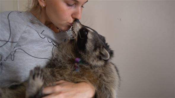 Yulia und Mona sind unzertrennlich, auch wenn Mona kein einfacher Mitbewohner ist. Der Waschbär sorgt für jede Menge Action.