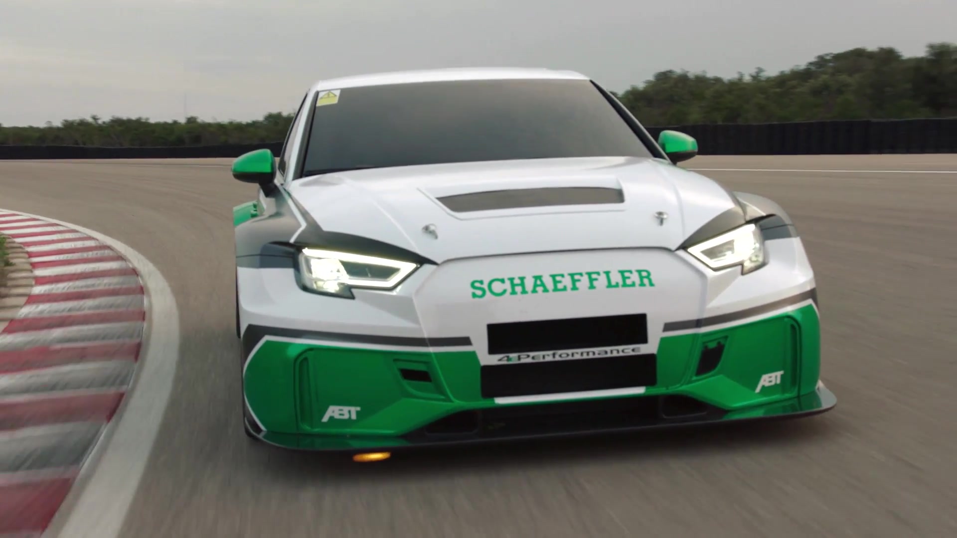 Schaeffler steckt vier ausrangierte Elektromotoren aus Formel E-Rennern in einen Audi RS3 TCR. Der muss nun mit 1.200 PS und einem Systemdrehmoment von 10.000 Nm klar kommen. Und der Fahrer mit einer neuen Dimension von Fahrdynamik. Kaum zu glauben. Wuchernde Kotflügelverbreiterungen, Slicks, Käfig, karges Interieur – und das das: Vorrangig wolle man eine emotionale Antriebstechnik für straßenzugelassene Kleinserien-Fahrzeuge vorstellen, erklärt Simon Opel, Leiter Sonderprojekte Motorsport bei Schaeffler. „Dass wir uns für einen Audi RS3 TCR als Basis entschieden haben, liegt daran, dass der schon so schön leergeräumt ist. Das hat uns Arbeit erspart.“ Die Arbeit, die hat nun derjenige, der hinterm Lenkrad sitzt. Schon auf den ersten Metern, nachdem das Projektfahrzeug aus der Boxengasse des Hockenheimrings auf die Strecke rollte, wirbelt es die Sinne durcheinander.