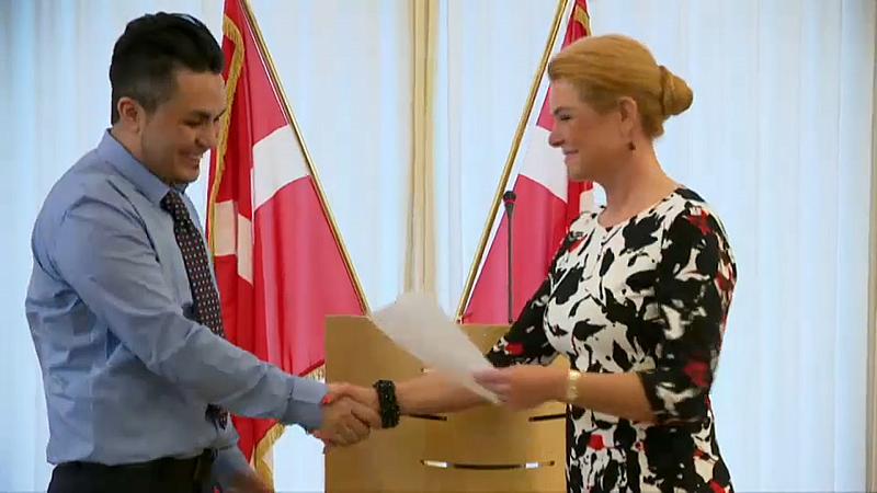 In Dänemark ist der Handschlag bei der Einbürgerung seit Dezember Gesetz. Jetzt wurde die erste Zeremonie nach neuem Statut vollzogen. Das Gesetz ist umstritten: Kritiker meinen, die Religionsfreiheit würde durch einen erzwungenen körperlichen Kontakt eingeschränkt.