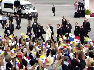 <br /> Papst Franziskus hat bei seiner Ankunft in Panama zunächst jubelnde Menschen am Rollfeld begrüßt - entgegen des offiziellen Protokolls. Das Oberhaupt der katholischen Kirche ist zum Weltjugendtag in dem mittelamerikanischen Land.<br />