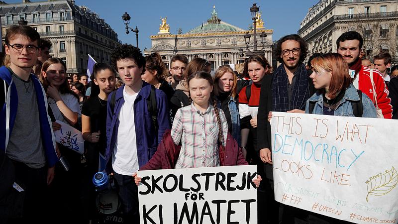 Tausende Schüler und andere junge Leute sind in Paris für Maßnahmen gegen den Klimawandel auf die Straße gegangen. Unter ihnen war auch die Schwedin Greta Thunberg, die sonst jeden Freitag in Stockholm die Proteste anführt. Diesmal marschierte sie in Paris vorneweg.