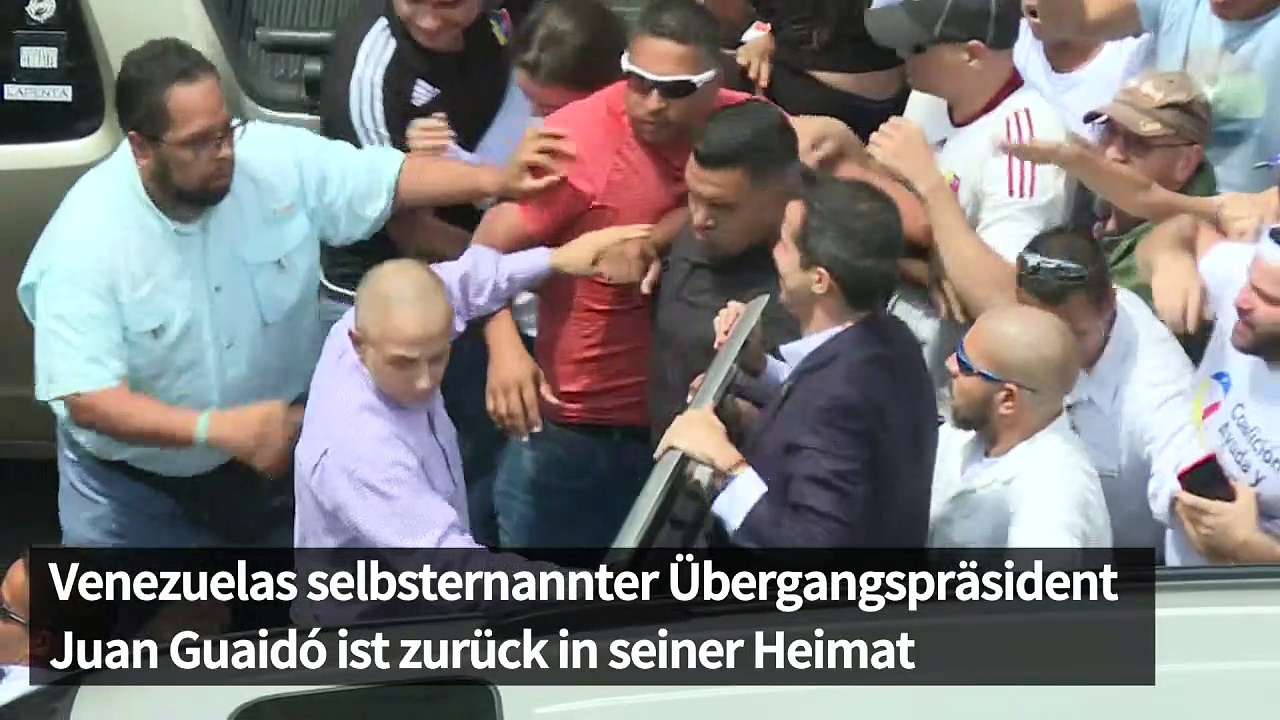 <br /> Venezuelas selbsternannter Übergangspräsident Juan Guaidó ist in seine Heimat zurückgekehrt. Der Oppositionschef landete auf dem Flughafen der Hauptstadt Caracas. Staatschef Nicolás Maduro hat mit seiner Festnahme gedroht, da Guaidó trotz eines Ausreiseverbotes Ende Februar das Land verlassen hatte.<br />