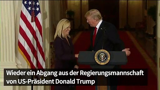 <br /> US-Heimatschutzministerin Kirstjen Nielsen - das Gesicht der umstrittenen Einwanderungspolitik von Präsident Donald Trump - verlässt die Regierung. Trump gab auf Twitter das Ausscheiden der 46-Jährigen aus dem Kabinett bekannt. Sie wird abgelöst vom derzeitigen Chef der US-Zoll- und Grenzschutzbehörde, Kevin McAleenan.<br />