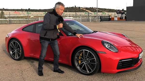 Klaus Niedzwiedz, Autotester: <br /> „Auch die 8. Generation des Porsche 911 besitzt natürlich die typischen Designmerkmale. Das sind zum Beispiel die runden und flachen Scheinwerfer. Das ist die sehr lange Schnauze und Haube. Dann gibt es hier diese ty…