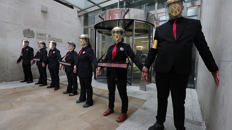 Klimaaktvisten legten am Donnerstagmorgen die Londoner U-Bahnstation Canary Wharf lahm und klebten sich mit Spezialkleber am Gebäude Londoner Börse fest.