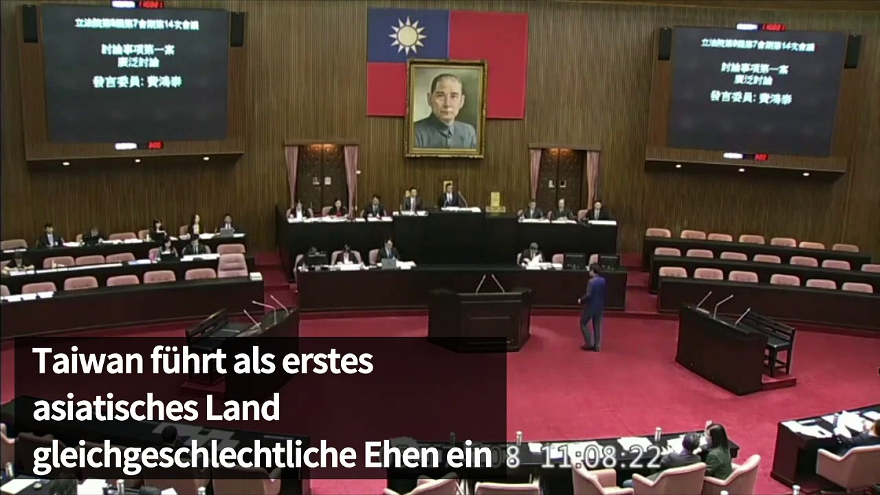 <br /> Taiwan führt als erstes asiatisches Land gleichgeschlechtliche Ehen ein. Nach der entscheidenden Parlamentsabstimmung feierten tausende Menschen vor dem Abgeordnetenhaus in Taipeh.<br />
