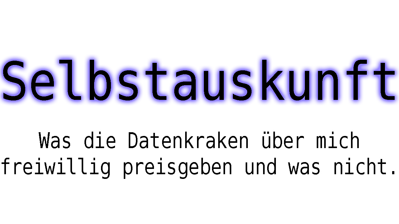 Selbstauskunft - Was geben Firmen über mich preis?<br /><br />##########################<br /><br />Ich hole mal eine Selbstauskunft über mich ein und schau mal, was andere Firmen so über mich gespeichert haben.<br />Mal sehen was die so freiwillig über mich erzählen und was sie vielleicht doch weiterhin verschweigen wollen.<br /><br />Wir schauen mal was Amazon, Google, Microsoft, Samsung, uPlay, Facebook und Twitter so an Ergebnissen liefern.<br /><br />##########################<br /><br />Du willst selbst eine Auskunft einholen?<br />Hier die passenden Links:<br />Amazon: https://www.amazon.de/hz/mycd/myx/#/home/alexaPrivacy/home<br />Google: https://myaccount.google.com/data-and-personalization<br />Facebook: https://www.facebook.com/settings?tab=your_facebook_information<br />Twitter: https://twitter.com/settings/your_twitter_data<br />Periscope: https://www.pscp.tv/account/your-data<br />Microsoft: https://account.microsoft.com/privacy/export<br />Samsung: https://account.samsung.com/membership/services/service-list<br />Ubisoft: https://account.ubisoft.com/de-DE/account-information<br /><br />##########################<br /><br />Du willst deine Daten schützen?<br />So kannst du dein Netzwerk etwas Datenschutzoptimieren:<br />uBlock (AdBlocker): https://github.com/gorhill/uBlock/<br />uMatrix (ScriptBlocker): https://www.youtube.com/watch?v=SUnm2-0qSNI<br />Pi-Hole: https://www.youtube.com/watch?v=ubzd2H1wZxE<br /><br />##########################<br /><br />Facebook<br />https://www.facebook.com/hoerli<br /><br />Twitter<br />https://twitter.com/HoerliDE<br /><br />Google+<br />https://plus.google.com/u/0/112505032031570272650<br /><br />Homepage<br />https://hoerli.net<br /><br />GameServers:<br />https://gamemania.org<br /><br />Livestreams:<br />https://hoerli.net/livestream/<br /><br />##########################<br /><br />Videoinfo<br />Auflösung: 3840x2160<br />FPS: 60<br />Datenrate: 30000kbps<br />Audio: 192kbps