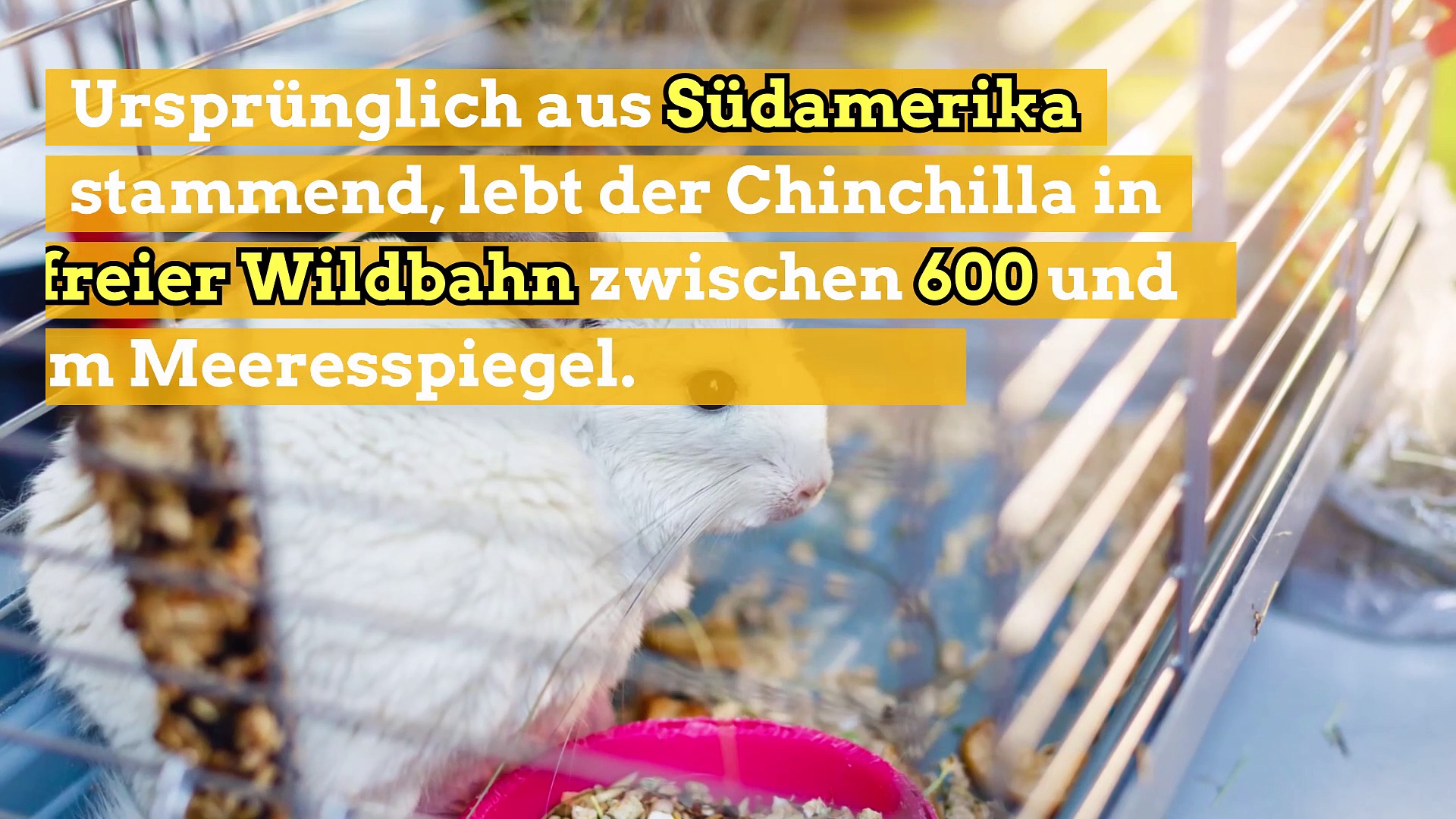 Ursprünglich aus Südamerika stammend, lebt der Chinchilla in freier Wildbahn zwischen 600 und 800m über dem Meeresspiegel. <br />Dank seines dicken Fells kann er sich an starke Klimaschwankungen anpassen. <br />Chinchillas wurden wegen ihres weichen und seidigen Fells, das fast 20.000 Haare pro cm2 hat, stark gejagt! <br />Sie sind heute eine bedrohte Wildart.<br /><br /> Der Chinchilla wird durchschnittlich zwischen 8 und 12 Jahren alt und hat die Größe eines Zwergkaninchens. Ein Männchen hat etwa 600g, ein Weibchen etwa 800g. <br /><br />Chinchillas sind von Natur aus ruhige und nicht sehr aggressive Tiere. <br />Sie sind ziemlich unabhängig, lebendig und neugierig! Deshalb ist es nicht einfach, dieses Tier zu zähmen! <br />Chinchillas können sehr liebevoll sein, wenn sie sich sicher fühlen. <br />Aus diesem Grund muss er schon früh daran gewöhnt sein, zu kuscheln, damit er sich allmählich sozialisieren kann. <br />Sie sind jedoch auch sehr empfindlich und ängstlich! <br />Es ist davon abzuraten, sie in einem Haushalt mit Kindern zu halten. <br /><br />Der Chinchilla ist ein guter Kletterer, der für seine Entwicklung nicht nur in seinem Käfig leben darf. <br />Sein Nahrungsbedarf ist gering: Er braucht nur 25 g Nahrung pro Tag!