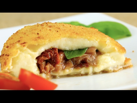 Überraschung! Das ist nicht nur ein panierter Mozzarella. Unser Snack Rezept hält noch eine Füllung bereit.<br /><br />Dafür brauchst du (für 4 Portionen):<br />20 g Schinken<br />25 g getrocknete Tomaten<br />frische Basilikumblätter<br />4 Mozzarellas<br />100 g Mehl<br />3 Eier<br />100 g Paniermehl<br />Öl zum Frittieren<br /><br />So geht es:<br />Schneide die Oberseite vom Mozzarella ein, aber nicht ab, sodass sie eine Lasche bildet. Schlage diese vorsichtig um und höhle den Käse mit einem Löffel aus.<br />Gib Schinken, Tomaten und einige Basilikumblätter in die Mulde und klappe die Lasche zu.<br />Jetzt wälzt du den Käse erst im Mehl, dann im Ei, zuletzt im Paniermehl.<br />Schließlich frittierst du die Mozzarellas bei rund 175 °C für sechs Minuten.<br /><br />Hier findest du den ganzen Artikel: http://www.leckerschmecker.me/schneid-mich-auf/?&ref=yt<br /><br />Unsere Tomate Mozzarella Röllchen schmecken auch sehr gut: http://www.leckerschmecker.me/paniertes-gedicht/?&ref=yt